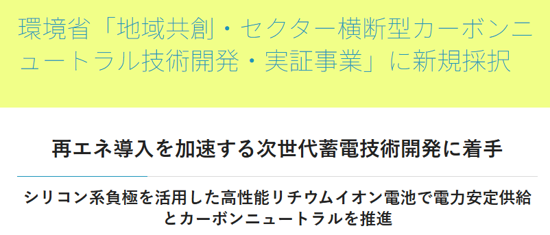 ▷環境省「地域共創・セクター横断型カーボンニュートラル技術開発・実証事業」に新規採択