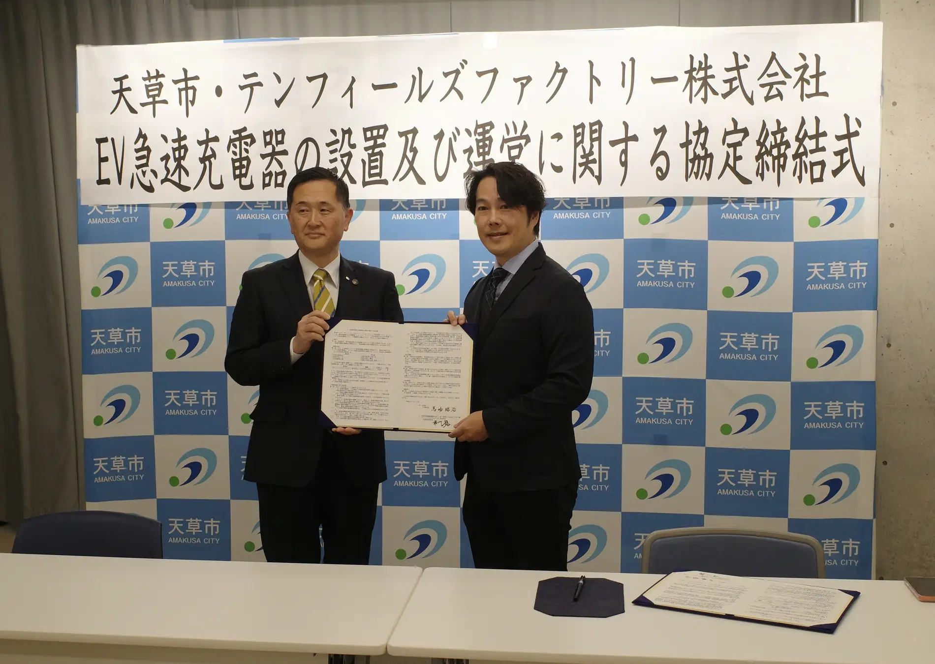 【次世代自動車・充電器】テンフィールズファクトリー:天草市と協定、EV急速充電器3基を整備