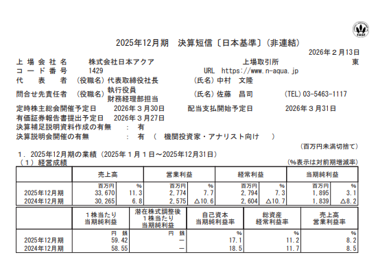 【決算】日本アクア:25年12月期増収増益、防水が倍増 26年は建築物の遅れ織り込み