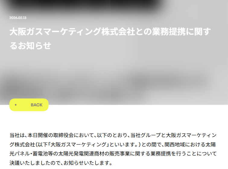 【提携・M&A・新会社】コレックHD:大阪ガスマーケティングと提携、関西で太陽光・蓄電池販売強化