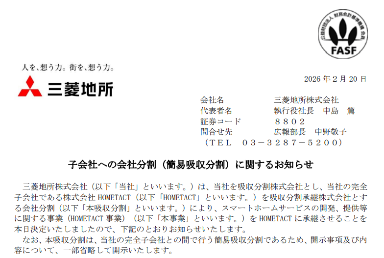 【提携・M&A・新会社】三菱地所:スマートホーム事業会社「株式会社HOMETACT」誕生、代表に橘氏