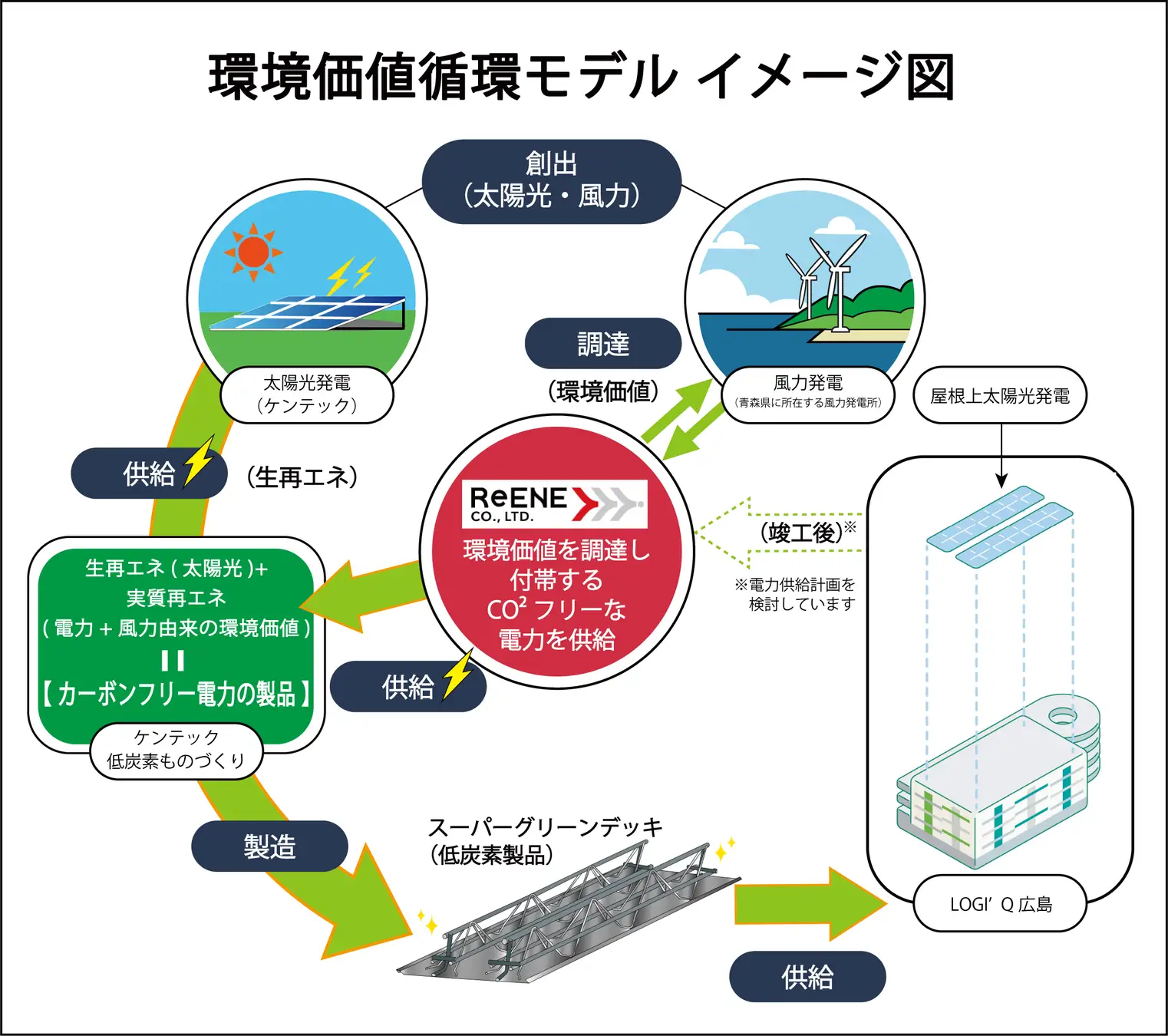 【脱炭素・SDGs・ESG】ケンテック:再エネ電力活用の建材製造を開始、広島物流施設向けに環境価値循環モデルを展開