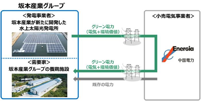 【太陽光発電】中国電力:水上太陽光を活用したオフサイトPPA、坂本産業の養鶏施設へ再エネ供給開始