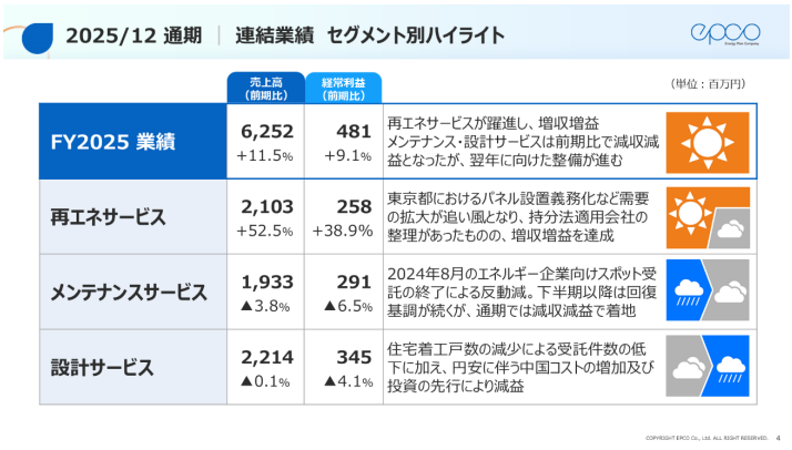 【決算】エプコ:再エネ成長で増収増益、26年も全事業で利益拡大へ