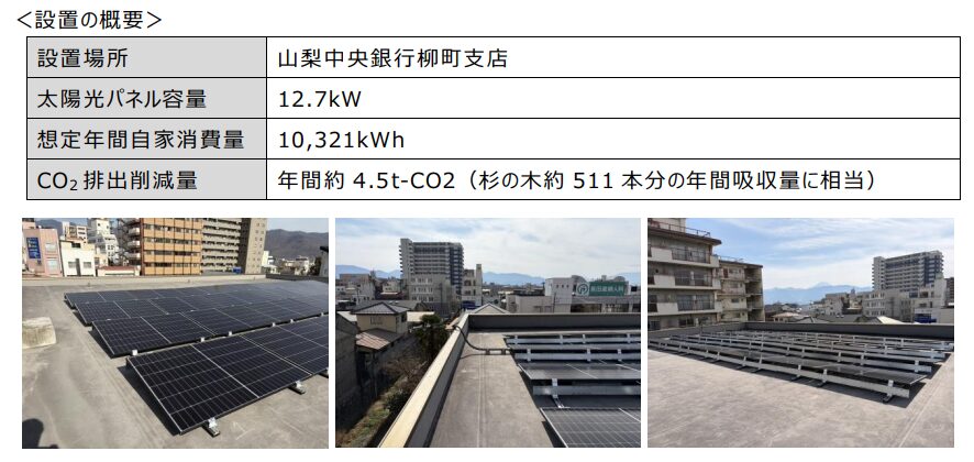 【脱炭素・SDGs・ESG】山梨中央銀行:柳町支店でオンサイトPPA太陽光導入、再エネ地産地消を推進