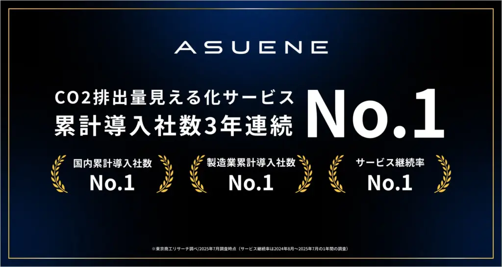 アスエネは、自社のCO2排出量見える化・削減・報告クラウドサービス「ASUENE」の累計導入社数が17,000社を超え、3年連続で国内No.1となったと発表した。製造業の導入も8,000社を突破し、サービス継続率は99%と高水準を維持している。温室効果ガスの削減が企業経営の重要課題となる中、精緻なScope1~3の算定やサプライチェーン全体の排出把握が求められており、同社のサービスは信頼性の高さと導入実績を背景に支持を広げている。