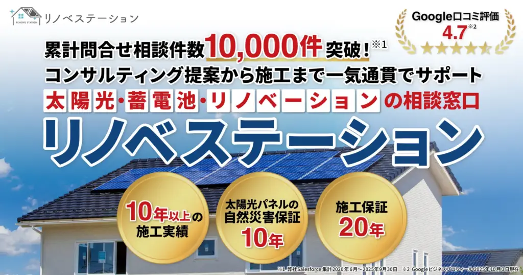 ▷太陽光・蓄電池・リノベーションの相談窓口「リノベステーション」、累計問い合わせ相談件数10,000件を突破!〜Google口コミ100件・評価4.7以上の高評価を獲得し、旧来の業界構造に変革を促す〜