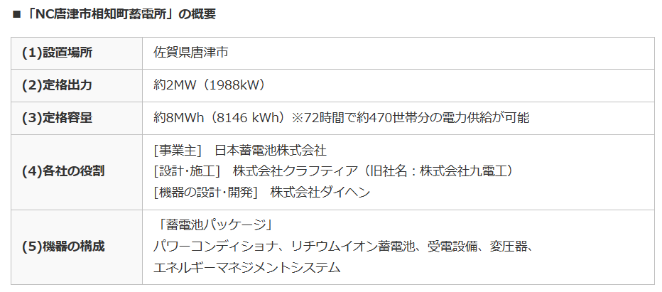 【蓄電関連】ダイヘン:「NC唐津市相知町蓄電所」に蓄電池パッケージ納入 地域防災にも活用
