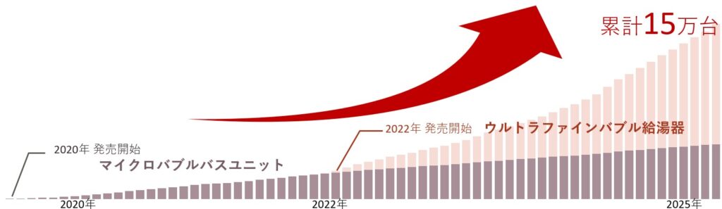 リンナイが2020年から展開する「Air Bubble Technology」搭載商品(マイクロバブルバスユニット、ウルトラファインバブル給湯器)の累計販売台数が、2025年9月時点で15万台を超えた。微細な泡を水に溶け込ませる独自技術が「家事負担軽減」や「美容・健康」志向の高まりと合致し、給湯器市場で高い支持を得ている。