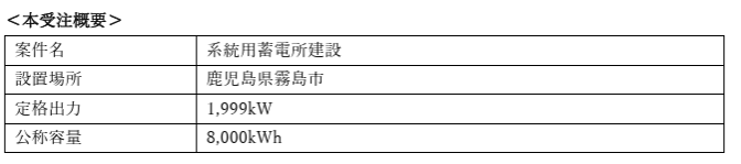 ▷株式会社多摩川ホールディングス子会社との協業プロジェクトが進行 系統用蓄電池システムの工事受注に関するお知らせ