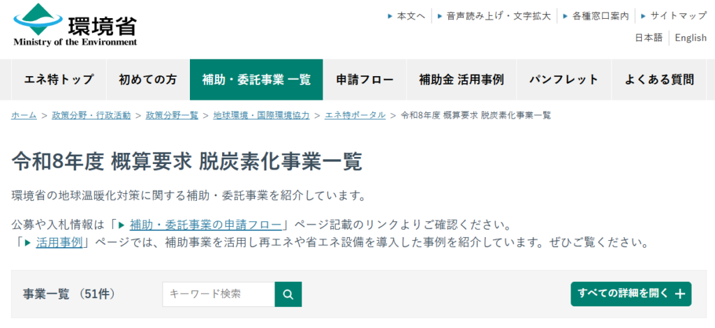 ▷令和8年度概算要求脱炭素化事業一覧-エネ特ポータル|環境省