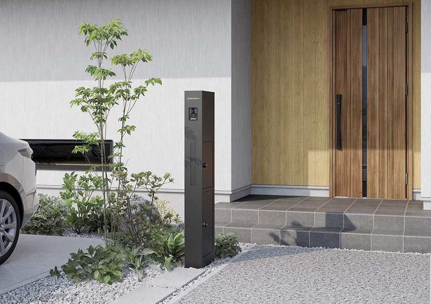 ▷宅配ボックス付きでスリムな機能ポール「フレムスModea」発売 ~照明内蔵でほのかに光る!夜間の荷物受け取りをサポート~
