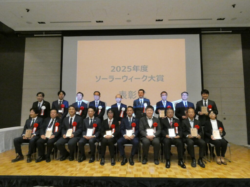 初日のシンポジウム閉会後には、地域貢献型の取組を表彰する「ソーラーウィーク大賞2025」授賞式を開催。地域に望まれ、模範となるプロジェクトが顕彰された。地域共生。不適切案件は確かに存在するようだが、称賛と注目されるべき取り組が周知された。