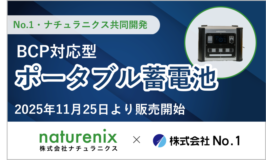 ▷No.1・ナチュラニクスがBCP対応型ポータブル蓄電池を共同開発し、 11月25日より販売開始
