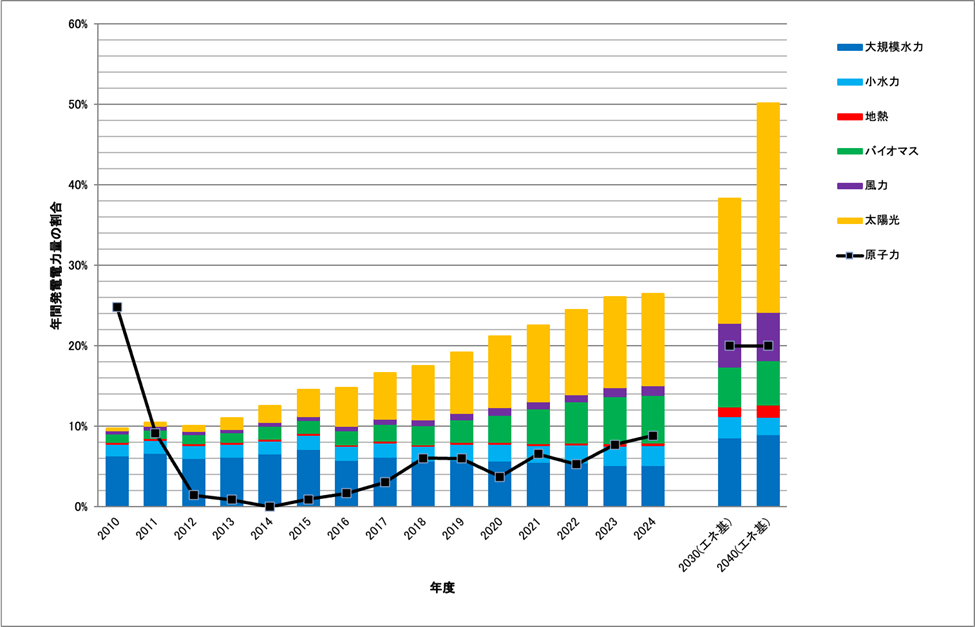 【市況】環境エネルギー政策研究所:2024年度自然エネ比率26.5%、増加鈍化と課題整理