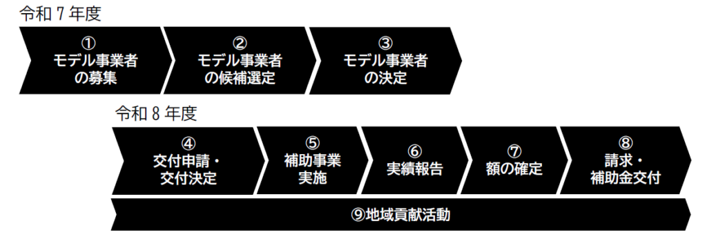 補助対象は太陽光発電設備と蓄電池、あるいはカーシェア用の電気自動車等と充放電設備で、補助率は原則として対象経費の3分の2とされる。太陽光・蓄電池には設備容量に応じた上限単価が設定され、自家消費率50%以上の確保やJクレジット登録の禁止なども条件となる。カーシェア事業では、再エネ由来電力での運用が求められ、電気自動車1台あたり100万円、プラグインハイブリッド車60万円を上限とする補助が用意されている。加えて、モデル事業者には企業規模ごとに配点基準を設けた地域貢献活動の実施が課され、環境教育、地域イベント、防災協定など多様なメニューを通じて「環境まちづくり」への関与を促す設計となっている。