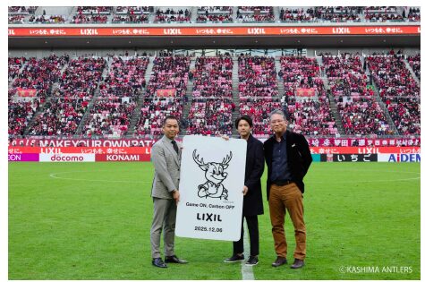 LIXILは、LIXIL TEPCO スマートパートナーズと協働で運営する「建て得みらいクラブ」を通じて創出したJ-クレジットを活用し、スポーツイベントで発生するCO₂のカーボンオフセットを実施した。2025年12月6日に開催された明治安田J1リーグ第38節・鹿島アントラーズ対横浜F・マリノス戦では、来場サポーターの移動に伴い排出された約500トンのCO₂をオフセットした。住宅分野で生まれた環境価値を社会へ還元する取り組みとして位置付ける。