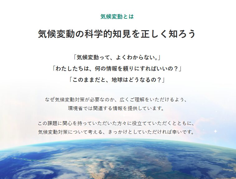 環境省は、気候変動に関する科学的知見を分かりやすく整理したウェブページを新たに開設した。脱炭素ポータル内に設け、国民が気候変動対策の必要性や背景となる科学的情報に幅広くアクセスできる入口と位置付ける。極端気象が相次ぐ中、科学的根拠に基づく理解促進を狙う。