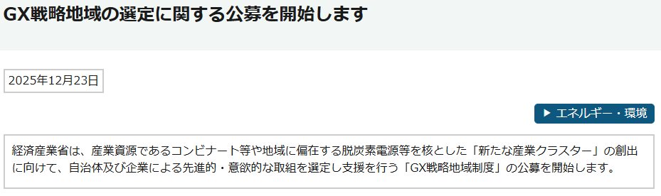 【公募】経済産業省:GX戦略地域制度の公募を開始