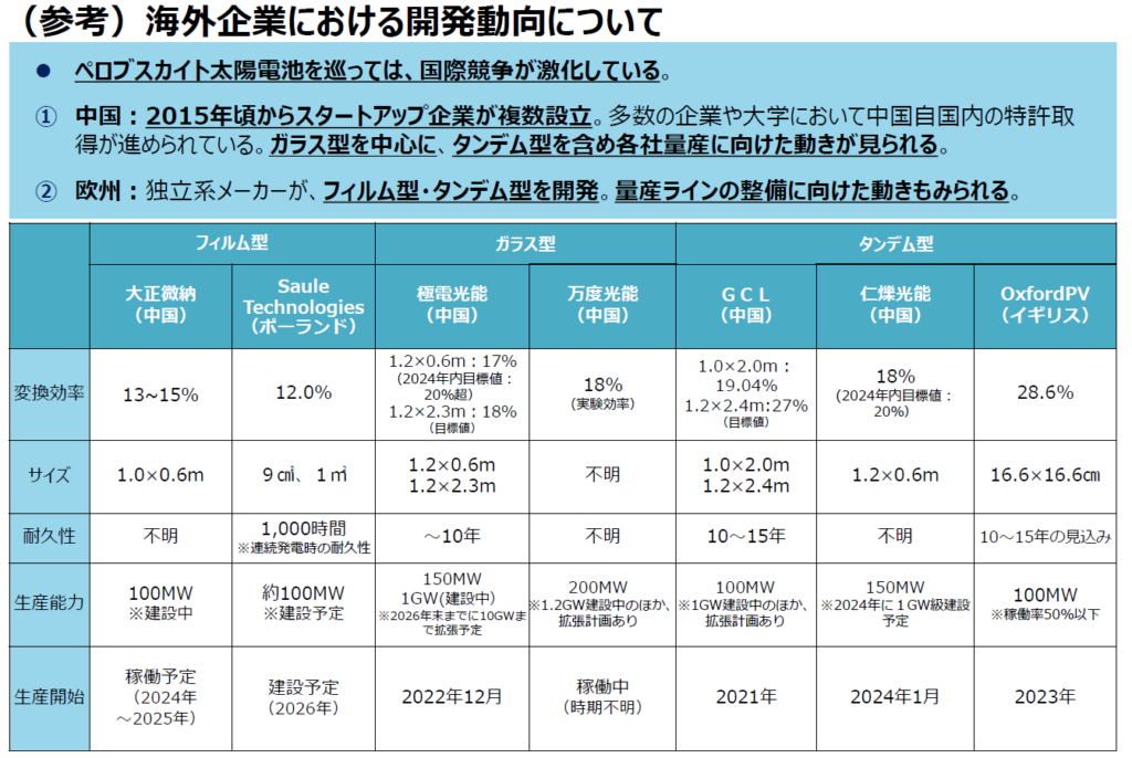 宮坂教授らの研究成果により技術的には存在していたが、世相として注目を集めたのは2024年5月。経済産業省が「次世代型太陽電池の導入拡大及び産業競争力強化に向けた官民協議会」を立ち上げたこと。