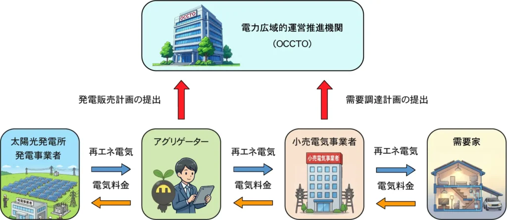 アグリゲーター制度では、送配電網を通じて再エネ電源を系統連系する際、30分単位で発電計画と実績を一致させる「計画値同時同量」が求められる。エコスタイルは太陽光発電所由来の電源を集約し、発電量予測管理の代行や、予測差分により発生するインバランスの負担・清算に関する業務を担う。これにより、再エネ電源や非化石価値をコーポレートPPAなどのスキームを通じて柔軟に活用できる環境を整える。