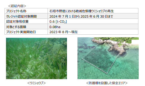 今回の取り組みは、絶滅危惧種を対象にしたブルーカーボン由来クレジットの創出として国内初の事例となる。2024年7月から1年間の活動で再生されたウミショウブによるCO₂吸収量0.6トンがクレジットとして認証され、企業の排出量オフセットなどへの活用が可能となった。対象面積は0.08ヘクタールと小規模ながら、生物多様性保全と脱炭素を同時に進めるモデルケースとしての意義が大きい。