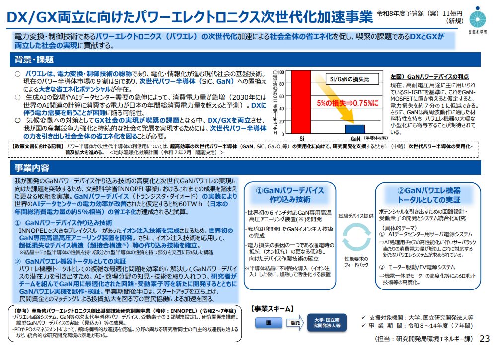 【政策】文部科学省:GaN活用でDX・GX両立を支えるパワーエレクトロニクス研究を加速