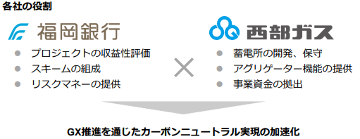 【蓄電関連】福岡銀行:西部ガスと系統用蓄電池で共同検討、GX推進を視野