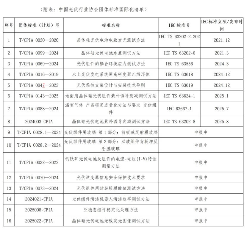 ▷喜讯:2025年中国光伏行业协会3项团体标准成功立项IEC国际标准