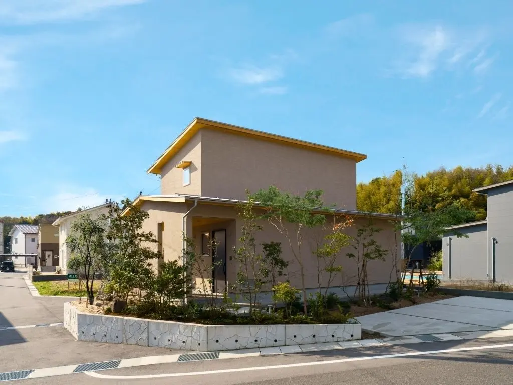 今回の導入は、山陰合同銀行主催のスタートアップフェスでの出会いを契機に検討が進んだ。単なる展示用住宅ではなく、将来にわたり価値を保つ住まいを目指し、新たな視点としてスマートホームを採用した。モデルハウスは三面道路の立地を生かし、外構設計を起点に計画。植栽やフェンスで視線を和らげ、内と外が緩やかにつながる構成とした。無垢材や造作家具を多用し、経年で味わいが増す素材感を重視している。