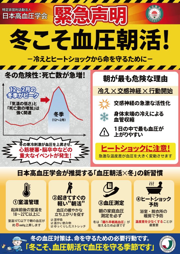 ▷緊急声明「冬こそ血圧朝活! -冷えとヒートショックから命を守るために-」