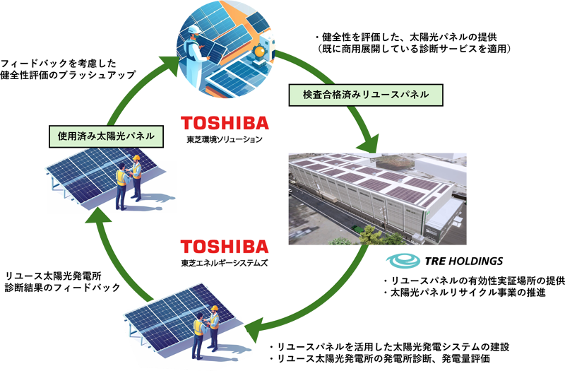 【太陽光発電】東芝:使用済み太陽光パネルのリユース実証、循環型発電モデルを検証