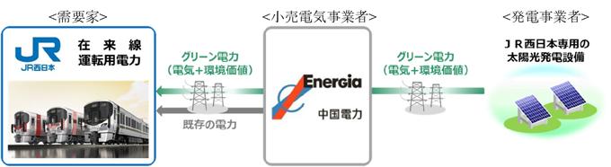 【脱炭素・SDGs・ESG】中国電力:JR西日本在来線向け再エネ電力供給を開始、PPAで脱炭素化推進