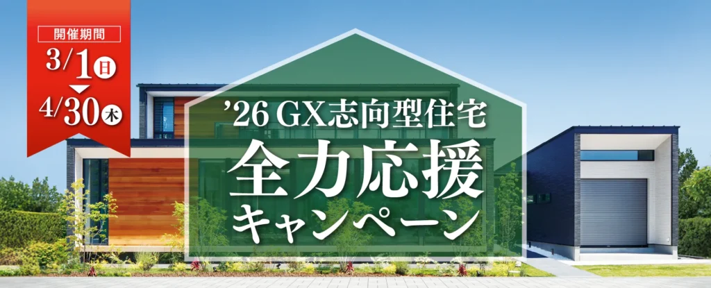 開催期間3/1(日)〜4/30(水) ’26 GX思考型住宅全力応援キャンペーン
