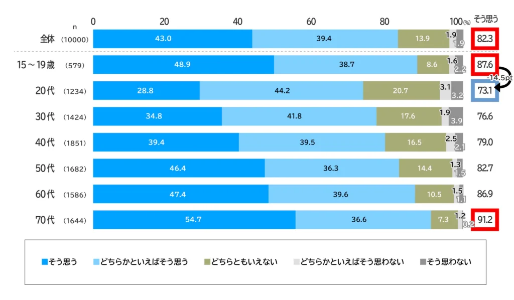 生活面で変化が生じそうな分野では、「電気やガスの利用」49.8%、「食べ物」47.1%、「健康・病気」44.8%が上位となった。エネルギー分野では「暑さで冷房使用が増える」「電気代上昇で生活費が増える」といった見方が多く、気候変動が家計負担や暮らしの基盤に直結するとの認識がうかがえる。属性分析では、50代以上は食べ物や家事など生活基盤に近い領域、10~40代は仕事や勉強、娯楽など自己実現に関わる領域への関心が高い傾向がみられた。電通は、世代や性別によって異なる不安や制約に応じた適応アクションの設計が必要とみており、気候変動対応をリスク対策にとどめず、新たな価値創造につなげる視点が重要としている。