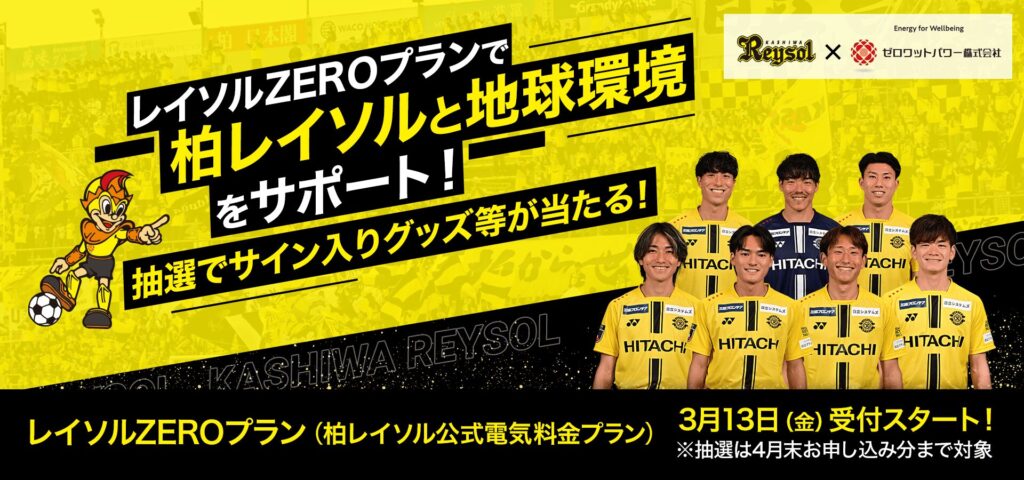 ゼロワットパワー×柏レイソル〜地球に優しい新電力メニュー『レイソルZEROプラン』〜申込受付開始のお知らせ