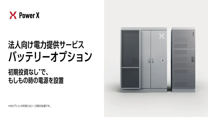 パワーエックスは、法人向け電力供給サービスに新たな「バッテリーオプション」を加えた。高圧・特別高圧契約を持つ中大型店舗や工場などを対象に、定置用蓄電システムを導入し、平時は通常の電力利用を続けながら、停電時には自立運転で必要電力を確保できる仕組みとした。対象は同社の全電力小売メニュー加入企業で、沖縄を除く全国9エリアに提供する。
