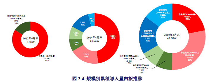 2012年7月の固定価格買取制度(FIT)の導入は新たな成長局面への転機となった。制度開始前の2012年6月末に5.6GWだった国内導入量は、わずか1年余りで2013年度末には14.3GWへと急増し、太陽光発電は一気に普及期へと入っていったのだった。