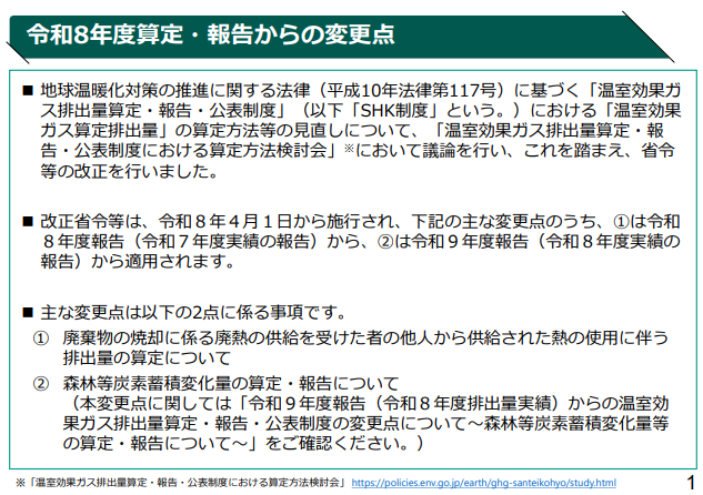 【政策】環境省:排出量算定マニュアル改訂、令和8年度報告に適用へ。森林関連は令和9年度から反映