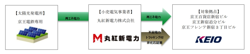 【脱炭素・SDGs・ESG】京王電鉄・丸紅新電力:新宿3物件にオフサイトPPA導入、年間8000トンのCO2削減へ