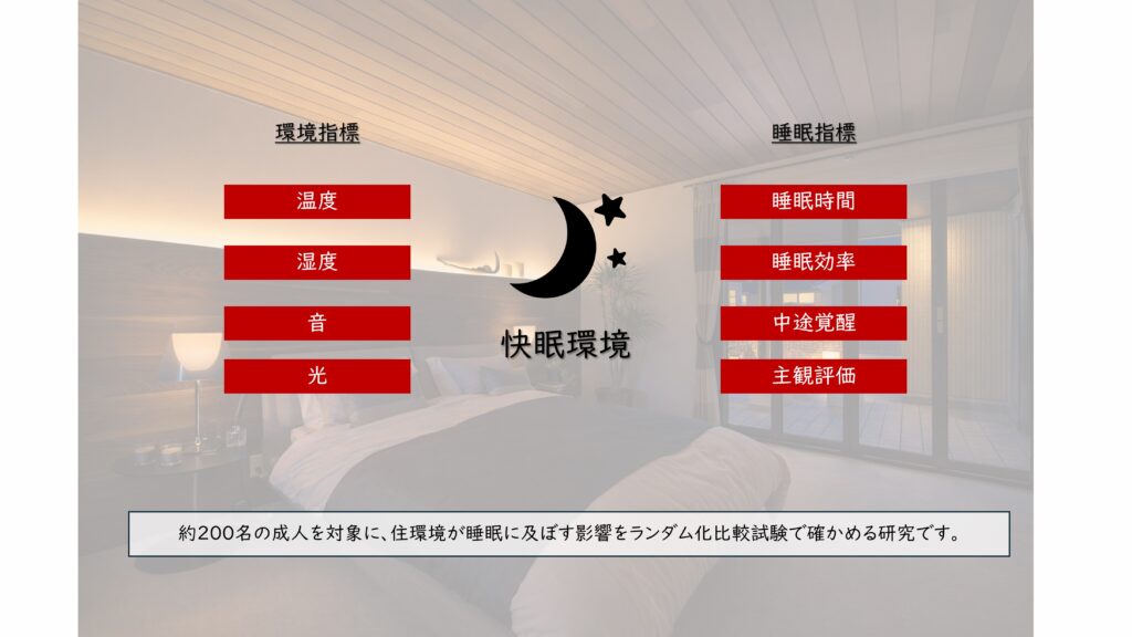 大和ハウス工業は奈良県立医科大学と、良質な睡眠を実現する住環境に関する共同研究を始めた。約200人の健康な成人を対象に、温度や湿度、照度、音といった住環境要因が睡眠に及ぼす影響をランダム化比較試験で検証する。日本の気象環境や実際の住環境を前提にした医学的なエビデンスを蓄積し、睡眠の質を高める住宅づくりにつなげる狙いがある。