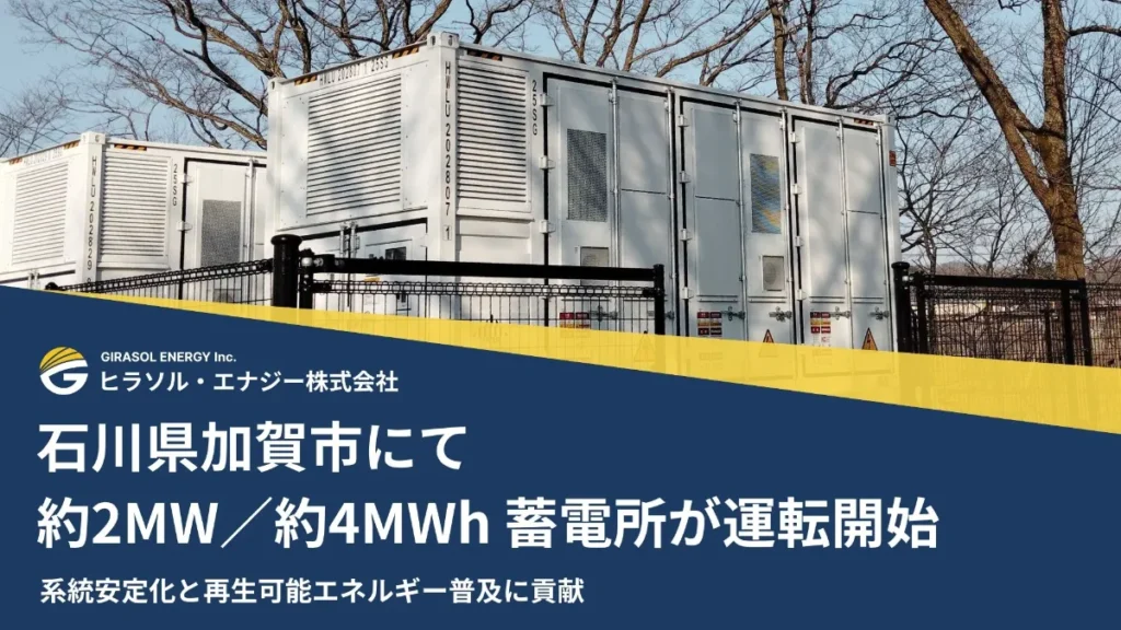 ▷石川県加賀市にて約2MW/約4MWh蓄電所を運転開始しました