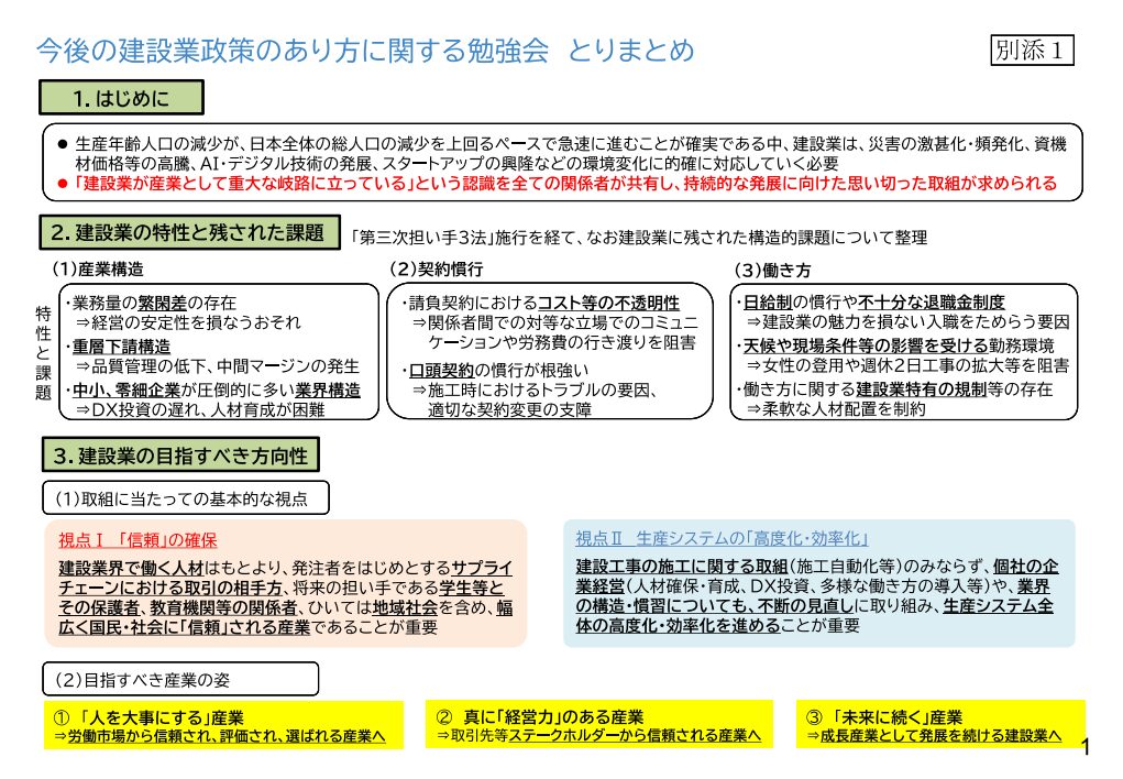 報道発表資料:「今後の建設業政策のあり方に関する勉強会」とりまとめについて~勉強会のとりまとめを公表します~