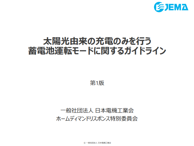 ▷太陽光由来の充電のみを行う蓄電池運転モードに関するガイドラインの公開について