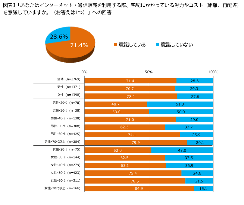受け取り方法では「玄関等で対面」が74.8%で最多だったが、「玄関前などに置き配」が47.7%と2番目に入り、非対面受け取りが定着した。調査では、ドライバーへの感謝の声が多い一方、時間指定どおりに届かない、指定外の置き配があったといった不満も寄せられた。人手不足や再配達負担への意識が広がる中、利便性と配送品質の両立が引き続き課題になりそうだ。