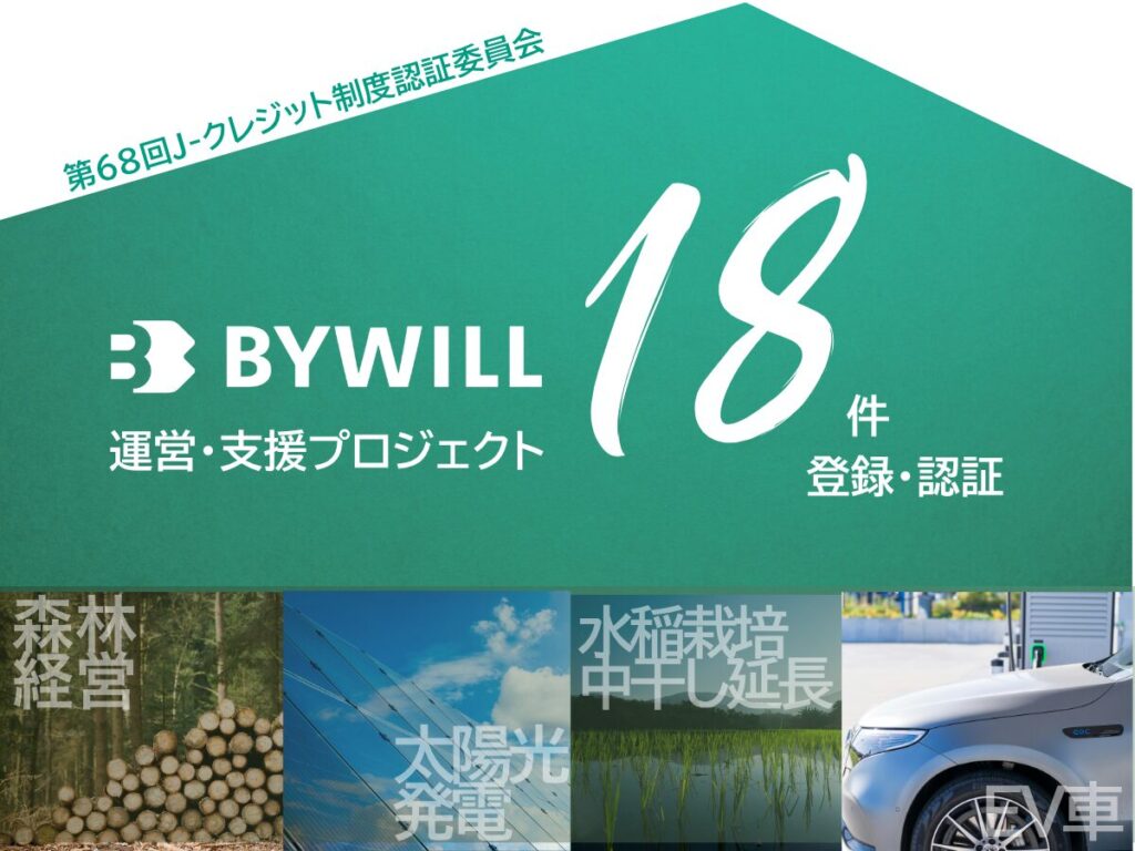 ▷【プレスリリース】第68回J-クレジット制度認証委員会にて、バイウィルが支援・運営するプロジェクト計18件が登録、認証