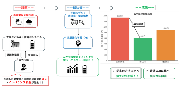 【AI・IoT・DX】筑波大学:AIで太陽光+蓄電池の運用最適化 インバランス料金を最大47%削減