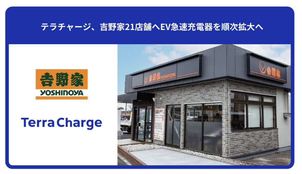 【次世代自動車・充電器】Terra Charge:吉野家21店舗へEV急速充電器を順次拡大