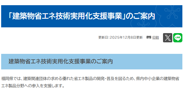 【公募】福岡県:建築物省エネ技術の実用化支援で県内中小企業を募集