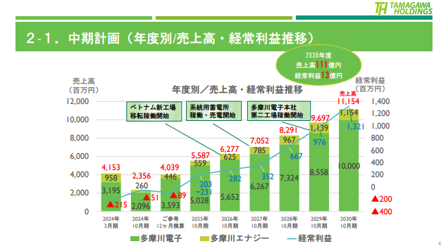 【中経】多摩川ホールディングス:売上2倍・経常利益6倍を目標とする中期経営計画を策定